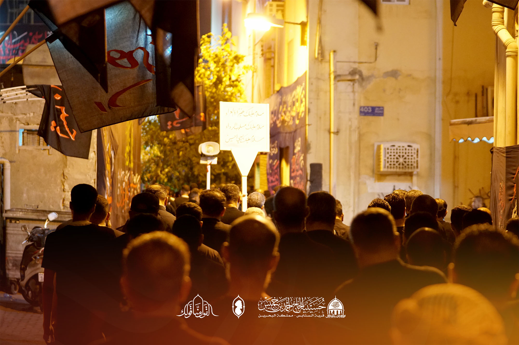 اصطفت جموع المؤمنين في فرقتين لينطلق موكب عزاء ليلة الوحشة في ليلة الحادي عشر من المحرم 1445هـ/2023م