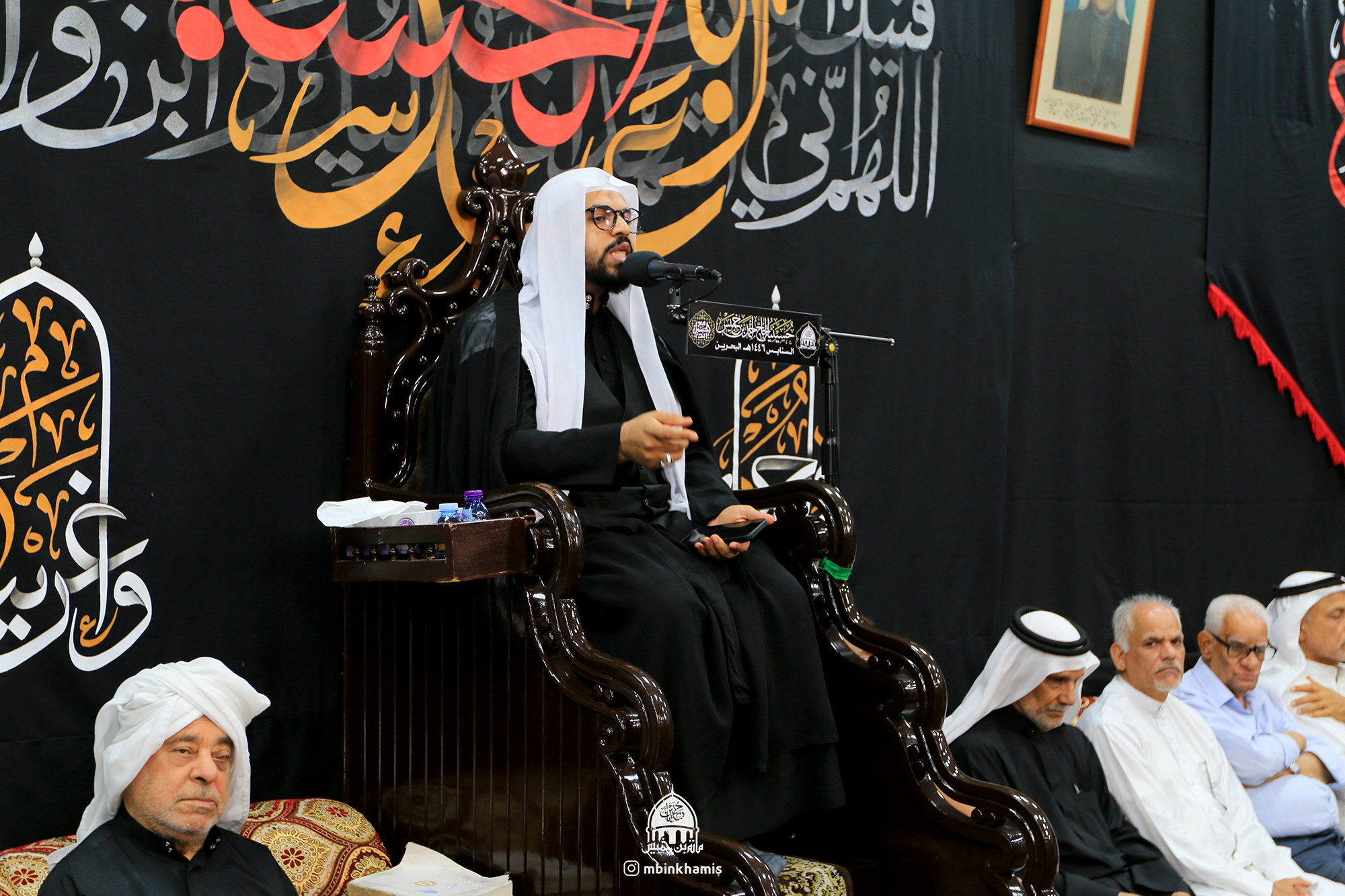 ابتدأت حسينية الحاج أحمد بن خميس سلسلة المجالس الحسينية و ذلك في ليلة الحادي من موسم محرمّ لعام 1446 هـ ، وقد سبق البرنامج تلاوة للقرآن الكريم بصوت القارئ جاسم محمد عبدالحسين ، وبعدها زيارة الإمام الحسين بصوت الدكتور جاسم الحرحوش ، و تحت عنوان " التفاعل الوجداني مع سيد الشهداء " ، ابتدأ سماحته بحديث عن الإمام الرضا عليه السلام: : " إن يوم الحسين أقرح جفوننا، وأسبل دموعنا، وأذل عزيزنا بأرض كرب وبلاء، أورثتنا الكرب والبلاء إلى يوم الانقضاء، فعلى مثل الحسين فليبك الباكون فان البكاء عليه يحط الذنوب العظام . " .إن التأكيدات الشريفة منهم عليهم السلام على إقامة مجالس العزاء للحسين عليه السلام ، لم ترد بحق غيره من المعصومين (ع) وكأن في المسألة سرًا دعا الى تلك التأكيدات ، بالإضافة الى أن الروايات الشريفة تحدثت عن الثواب العظيم لحضور هذه المجالس و الإتزام بها و العزاء فيها ، ولعلّ أغلب تلك التأكيدات بدأت من زمن الإمام الصادق عليه السلام ، باعتبار أن الزمان كان مناسبًا ، ونجد الكثير من التأكيدات حتى من الأعداء ..