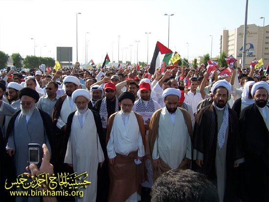 استجابة لنداء الإمام الخميني رضوان الله عليه في جعل آخر جمعة من شهر رمضان المبارك يوما عالميا للقدس فقد انطلقت مسيرة جماهيرية كبرى تقدمها السادة العلماء وعلى رأسهم سماحة العلامة الشيخ عيسى أحمد قاسم وسماحة السيد عبد الله الغريفي.