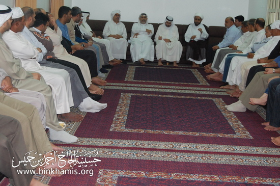 بدعوة من لجنة الموكب في حسينية الحاج أحمد بن خميس التقى جمع من رواديد القرية مع مجموعة من المعزين وإداريين بديوانية الحسينية يوم الأحد الماضي الموافق 13 ديسمبر 2009م، ألقى خلالها سماحة الشيخ محمد صنقور كلمة مصغرة أشار فيها إلى أهمية عقد مثل تلك الجلسات الحوارية التشاورية بين معزين ورواديد وإدارات مما لها من أهمية كبيرة في إذابة كل الإختلافات والوصول إلى نقاط إلتقاء عند كل مشكلة تطرأ في الطريق.