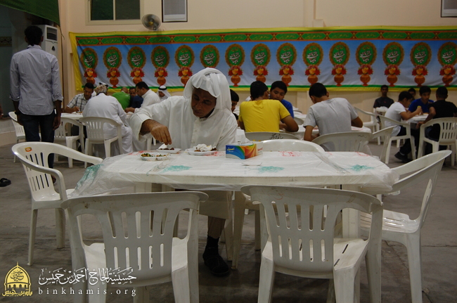 أسعد الله أيامكم بذكرى مولد الإمام صاحب العصر والزمان عليه السلام. أحيت حسينية الحاج أحمد بن خميس هذه الذكرى المباركة والعظيمة بإحتفال منوع. في البداية، وعند الساعة السابعة والنصف مساءا، افتتح مهرجان المنتظر العاشر في ليلته الثانية، والذي احتوى على ألعاب للأطفال ومسابقات وجوائز وهدايا منوعة. أما داخل الحسينية، فكانت هناك المأكولات والمشروبات المختلفة، وقرب بوابة الحسينية الرئيسية، فكان هناك مضيف الشهيد هاني عباس خميس، ومقابله تم توزيع العصائر الطبيعية، واحتشد المؤمنون أيضا قرب مضيف المشرعة. كما عمت الأفراح كل أنحاء قرية السنابس ابتهاجا بهذه الذكرى. بعد ذلك، تمت قراءة زيارة الإمام الحسين عليه السلام، ثم ارتقى الخطيب الحسيني السيد حسين السماهيجي المنبر ليقرأ على مسامع الحضور الكريم مولد الإمام المنتظر، بعدها تم قراءة القرآن الكريم، ومن ثم صلاة هذه اليلة بإمامة الشيخ رضي فضل عقبها كلمة قصيرة بهذه المناسبة. للذهاب للقسم الثاني من التغطية المصورة اضغط هنا