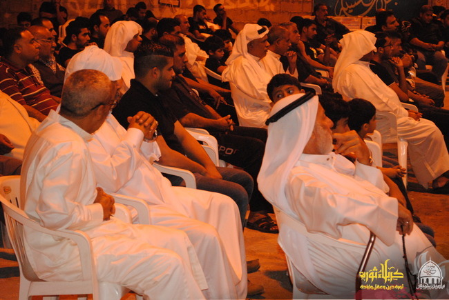أحيت حسينية الحاج أحمد بن خميس ليلة السابع من محرم عام 1436 هـ ، وهي الليلة المخصصة لرثاء أبي الفضل العبّاس ، حيث اعتلى المنبر سماحة الشيخ علي البني وقد إستهلّ مجلسه بحديث للإمام السجاد ( ع ) " رحم الله العباس فلقد آثر و أبلى وفدّى أخاه بنفسه حتى قطعت يداه فأبدله الله بهما جناحين يطير مع الملائكة في الجنة " .