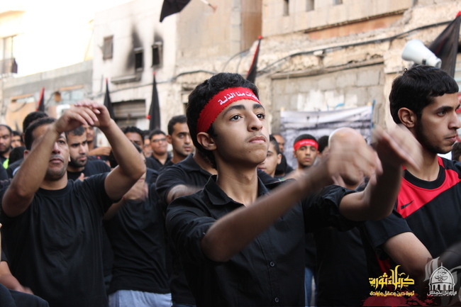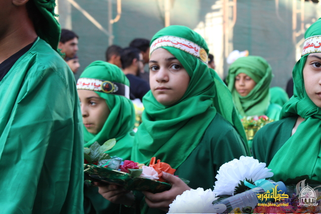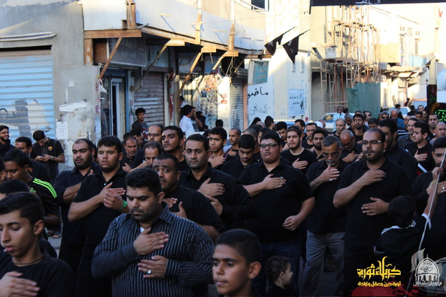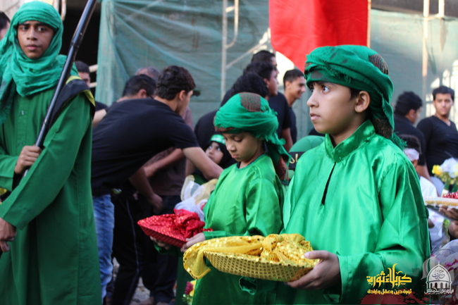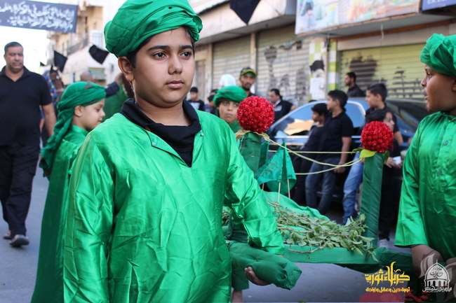 انه اليوم الثامن من المحرم، اليوم المخصص للقاسم بن الحسن عليه السلام، ارتبط هذا اليوم بالشباب وبالزفاف، حيث تتكون قمة الحسرة واللوعة والألم لفراق القاسم عن والدته، وهو بعمر لا يتجاوز الـ 13 على أغلب الروايات. في حسينية الحاج أحمد بن خميس، شارك الرادود الحسيني مهدي سهوان في موكب المسير، وتقدّم الموكب المهيب، مشهد تمثيلي لزفاف القاسم (ع) للشهادة، حيث حمل المشاركون الحبق (المشموم)، ولبسوا الثياب الخضراء، كنايةً عن الهاشميين، والشموع.. إنها قطعة من الصورة الكاملة، يوم العاشر من المحرم، في كربلاء، سنة 61 للهجرة..